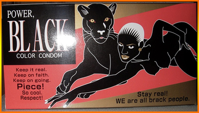 There's a couple of photos up on flickr of Black Power condoms that were being sold in South Korea. The sociological implications of the Engrish marketing campaign behind this product is too complex for me to analyze, so I'll let the picture of the box speak for itself.
