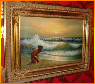 Banksy, recently in the news for his guerrilla remix of Paris Hilton's cd, held a VIP Preview for his new art display in Los Angeles last week. While Banksy deservedly gets some criticism for selling out -- his work has a decidedly anticapitalism slant to it, yet he sells his pieces for upwards of $100,000 and has allegedly done marketing work for Puma -- his art is still pretty dope. I think his work is a pretty good counterpoint to the argument that graffiti is not art. A couple of blogs have put up pictures of the art show, go check 'em out: