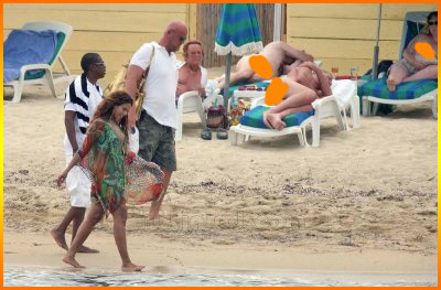 Jay-Z and Beyonce at St. Tropez. Most likely photoshopped (if not, their bodyguard must be about seven feet tall), but amusing nonetheless. I took the liberty of editing the nudity out for those of you not comfortable viewing softcore photos at work.