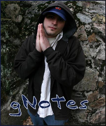 Originally hailing from Washington state, gNotes started out playing acoustic guitar, finding inspiration from the post-Nirvana music scene in nearby Seattle. His Northwest roots are evident throughout the album, from the underlying political message in his lyrics (not unlike Seattle's Blue Scholars) to the beats, often built around guitar samples, that he produces. gNotes is a change of pace from the usual style of rap that I put up on this site, but give the music a chance, there's some dope songs to be heard from him.